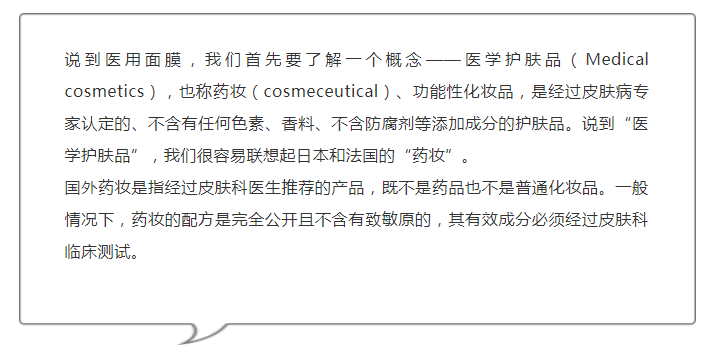 普通面膜所宣稱的修復(fù)功能和醫(yī)用面膜完全是兩個概念。
